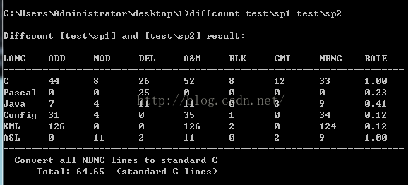 Diffcount 主要功能包括代码统计和差异统计,代码统计操作通过命令式方式操作,总体操作还算简单,适合开发者操作,代码统计相对于上面其他三个没特别优势,如果是想用差异统计推荐使用Diffcount